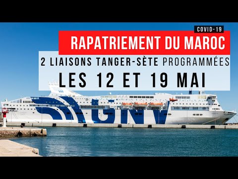 Les traversées GNV mises en place en liaison avec l’Ambassade de France au Maroc partiront de Tanger pour Sète les 12 et 19 mai. (La traversée du 8 mai n’a pas eu lieu et celle du 16 mai n’aura pas lieu.)