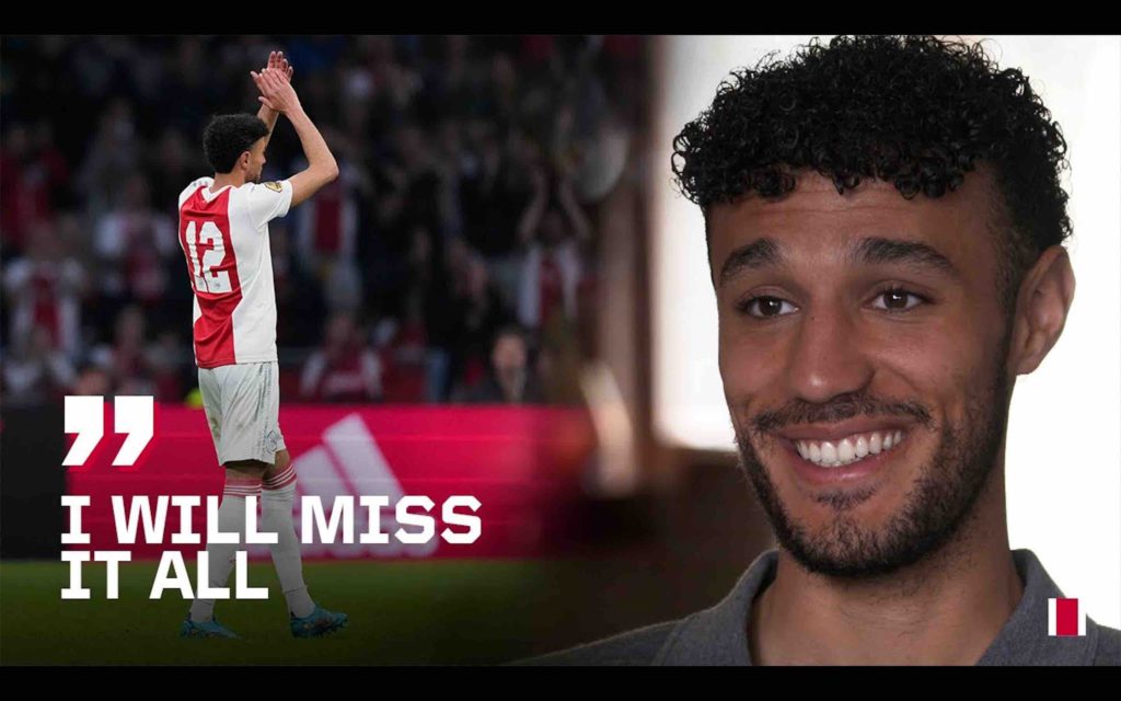 « Sept ans passés au club… J’ai aujourd’hui 24 ans, et je peux dire que j’ai atteint la majorité au sein de l’Ajax », a déclaré Noussair Mazraoui.
