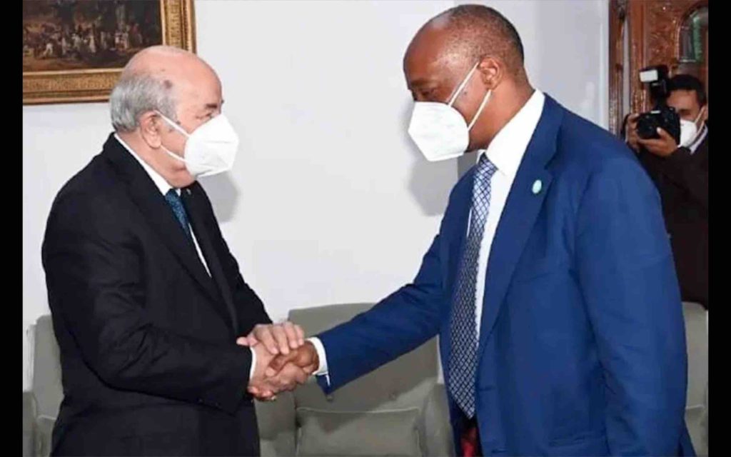 Lors de son déplacement en Algérie, le président de la Confédération africaine de football a été reçu par le président algérien, Abdelmadjid Tebboune qui lui a fait une poignée de main des plus appuyées.