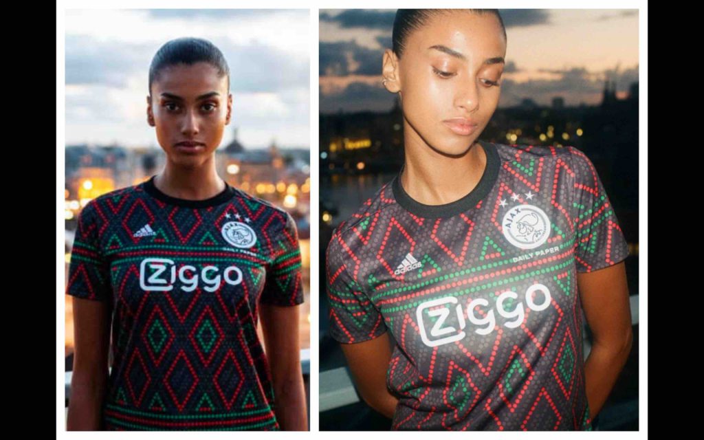 Inspiré du perlage d’Afrique de l’Est, le nouveau maillot de l’Ajax Amsterdam (L’Amsterdamsche Football Club Ajax) célèbre les diverses cultures et communautés d’Amsterdam.