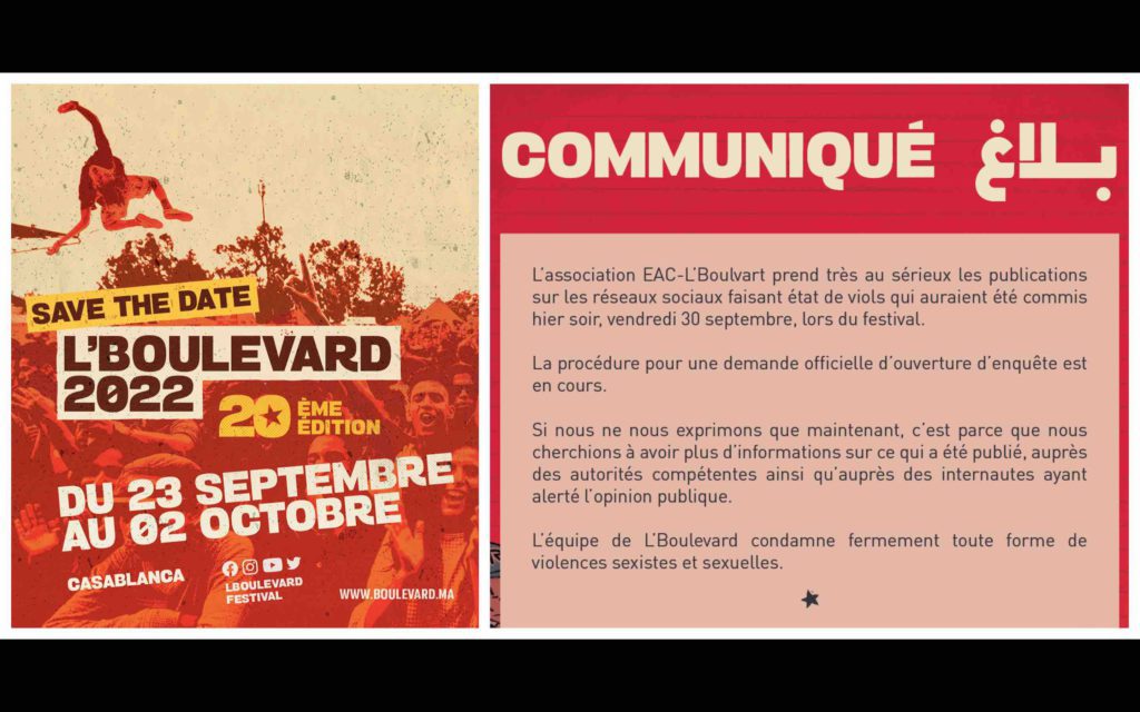 L’ASSOCIATION EAC-L’BOULVART SOUHAITE L’OUVERTURE D’UNE ENQUÊTE SUR LES TÉMOIGNAGES DE VIOLS LORS DU FESTIVAL L’BOULEVARD