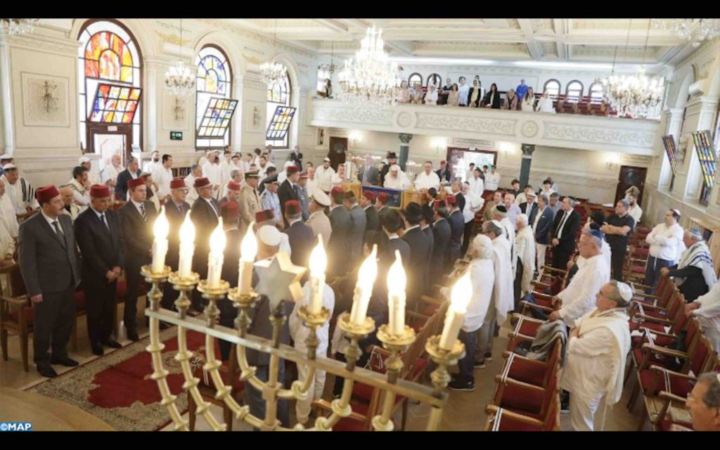 La communauté juive marocaine a organisé, au temple Beth-El de Casablanca, une cérémonie religieuse à la mémoire de Feu SM le Roi Mohammed V et de Feu SM le Roi Hassan II et à la gloire Sa Majesté le Roi Mohammed VI et ce, à l’occasion de la célébration de Yom Kippour (jour du Grand Pardon) 5783/2022.