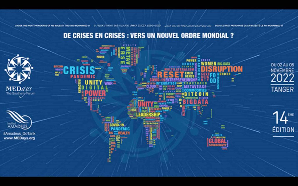 L’Institut Amadeus organise, du 2 au 5 novembre à Tanger, la 14ème édition du Forum MEDays pour explorer toutes les facettes de la thématique 2022 du « Forum du Sud »: « De crises en crises : vers un nouvel ordre mondial? ».