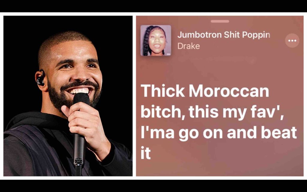 « Thick Moroccan bitch, this my fav’, I’ma go on and beat it », comprendre : « Grosse sal* marocaine, c’est ma préférée, je vais continuer et la battre ». Cette phrase tirée du dernier titre « Jumbotron Shit Poppin » de Drake diffusé sur YouTube il y a seulement deux jours a soulevé de vives polémiques. Bon nombre d’internautes marocains jugent la chanson humiliante et dégradante envers les Marocaines.