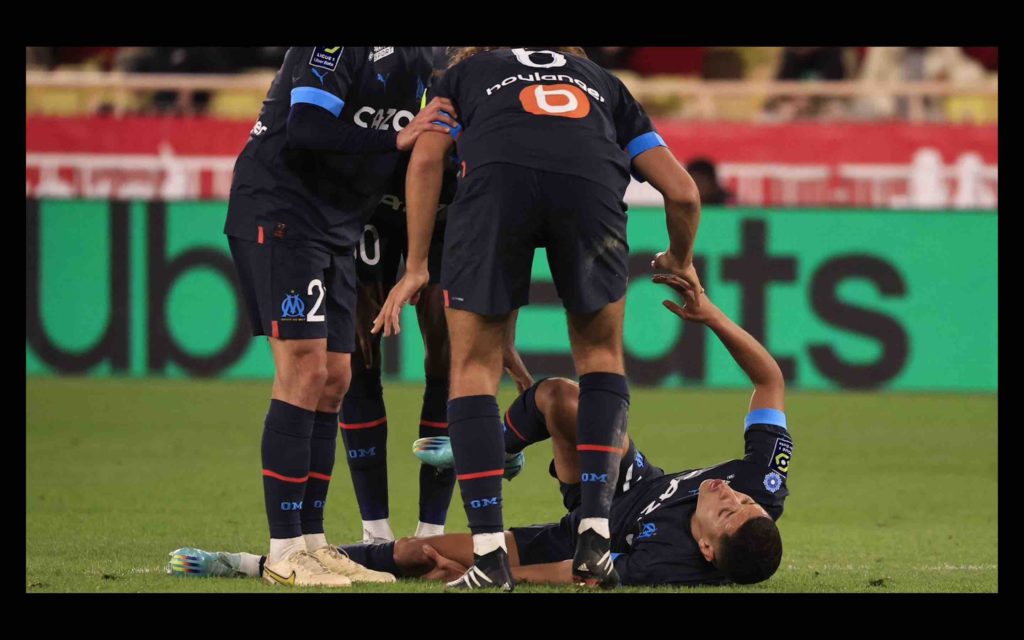 Dimanche, Amine Harit est sorti du terrain sur une civière lors du match contre Monaco.