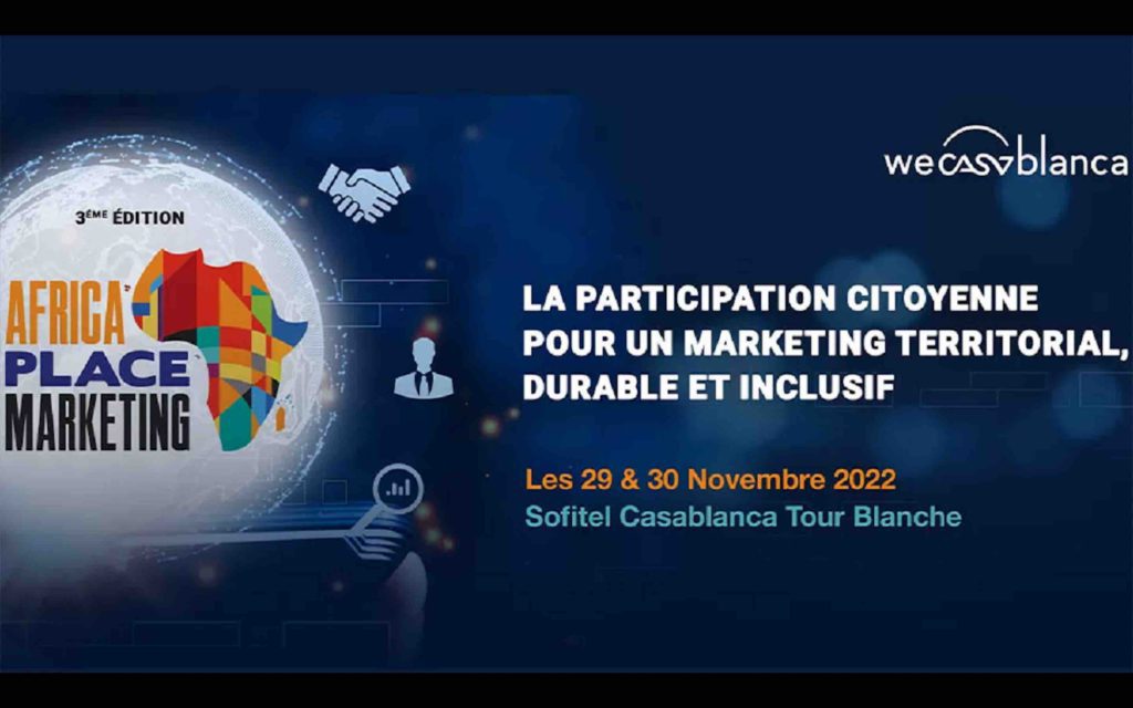 La troisième édition de l’Africa Place Marketing se tiendra, les 29 et 30 novembre 2022 à Casablanca, à l’initiative de la Société de Développement Local (SDL) Casablanca Events et Animation, sous la thématique « la participation citoyenne; pour un marketing territorial, durable et inclusif ».