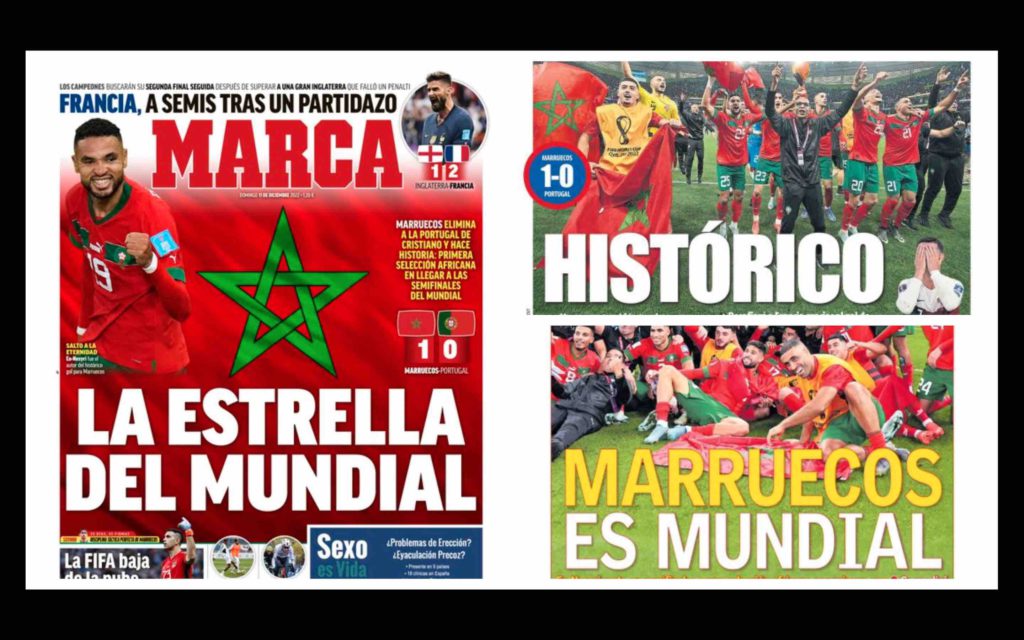 En Espagne, on s’enflamme également pour ceux qui ont fait sortir la Roja en huitième de finale (0-0, t.a.b. 3-0). «L’étoile du Mondial», titre Marca, «le Maroc est Mondial», renchérit AS, «Historique», ajoute Mundo Deportivo.