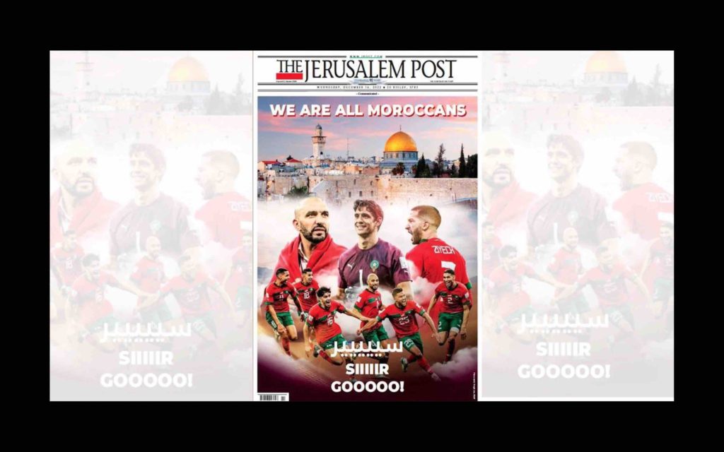«WE ARE ALL MOROCCANS» («NOUS SOMMES TOUS MAROCAINS»): C’EST LE TITRE QUI TRÔNE, CE MERCREDI 14 DÉCEMBRE 2022 EN UNE DU JERUSALEM POST, PRINCIPAL JOURNAL ANGLOPHONE D’ISRAËL. UNE COUVERTURE OÙ FIGURE UNE PHOTO DES LIONS DE L’ATLAS.