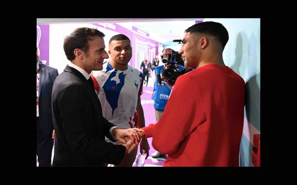 Dans la vidéo qui a fait surface sur les réseaux sociaux, on peut voir le président Macron serrer la main et serrer enlacer les joueurs marocains. Des photos de lui entrain de discuté avec Achraf Hakimi ont également été publiés.