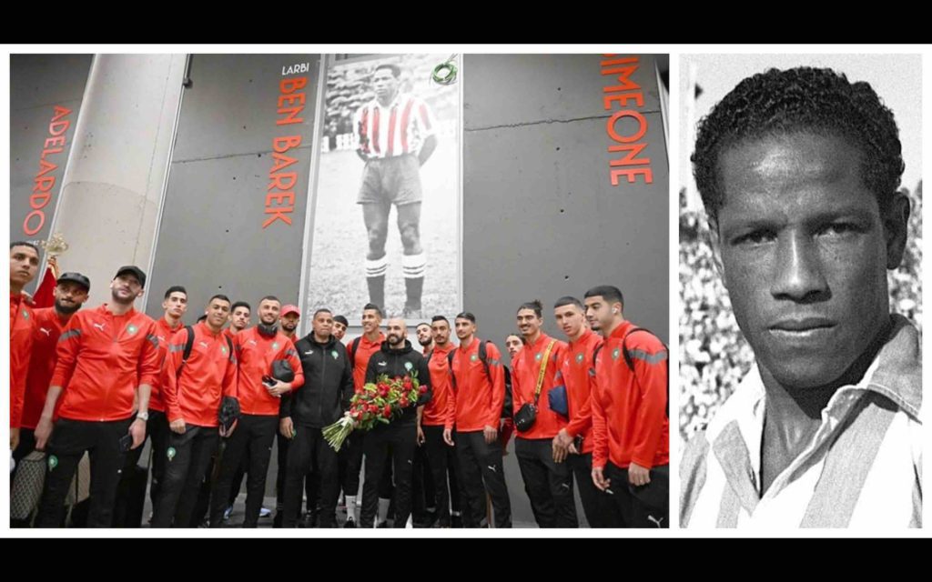 MAROC-PÉROU: LES LIONS DE L’ATLAS ET LE STAFF DE L’ÉQUIPE NATIONALE RENDENT HOMMAGE À LARBI BENBAREK