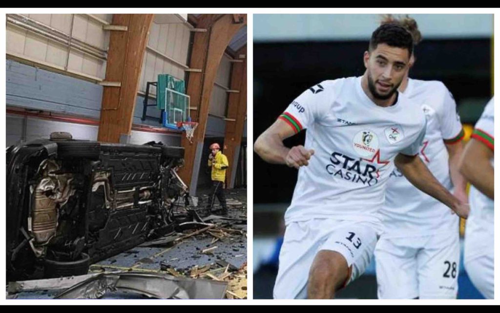 Une Mercedes décolle à 5m de haut, fait un vol plané et finit dans le hall omnisports de Flémalle: le conducteur est Sofian Kiyine, joueur verviétois d’OHL en D1, voici la vidéo choc de l’accident! https://t.co/ZPj2FYrHUs pic.twitter.com/FgGewTIQzL